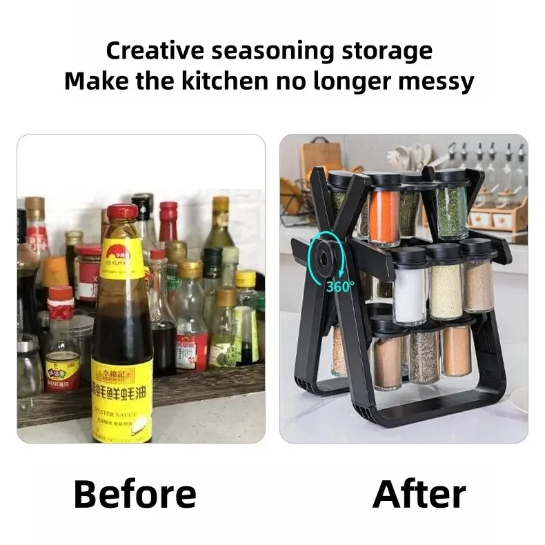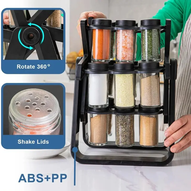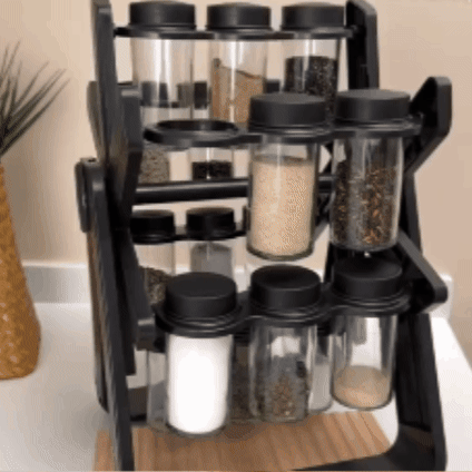 ✅ Estante giratorio de 360° – fácil acceso a todos tus condimentos sin mover todo el set.