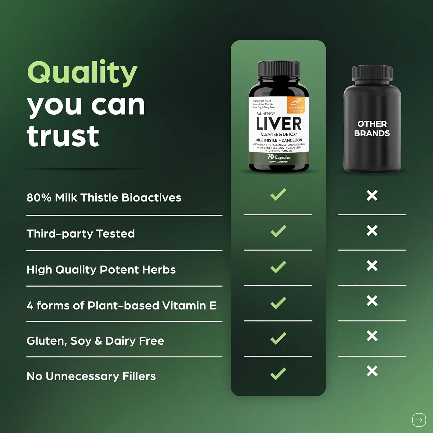 ✅ Fórmula 11-en-1 con extracto de cardo mariano (80% silimarina), diente de león, remolacha, andrographis y berberina.