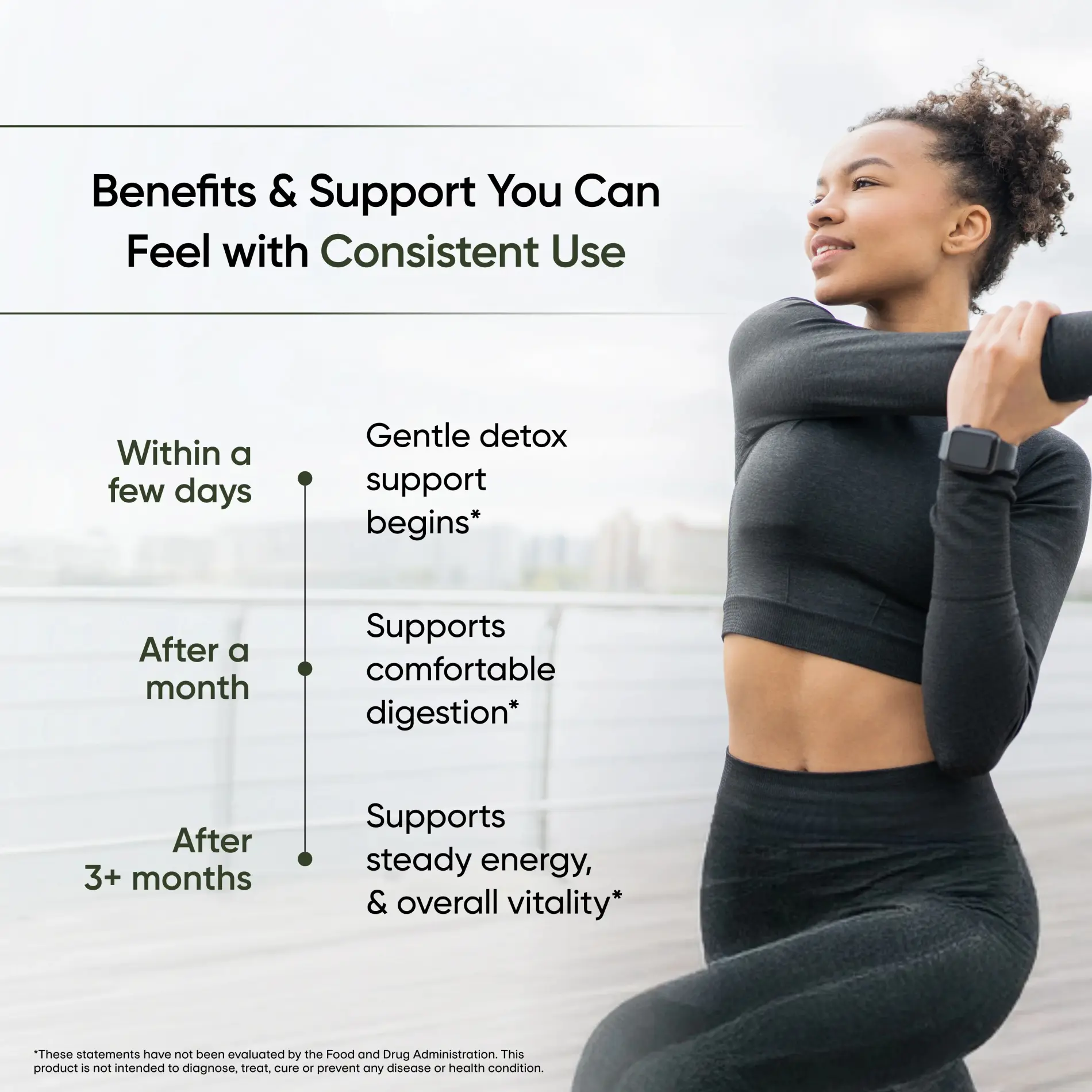 Liver Cleanse & Detox combina extractos herbales tradicionales con minerales esenciales y antioxidantes de alta absorción para apoyar tu hígado, mejorar la digestión, potenciar tu energía y contribuir a un bienestar integral.